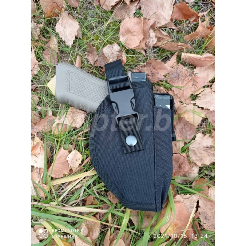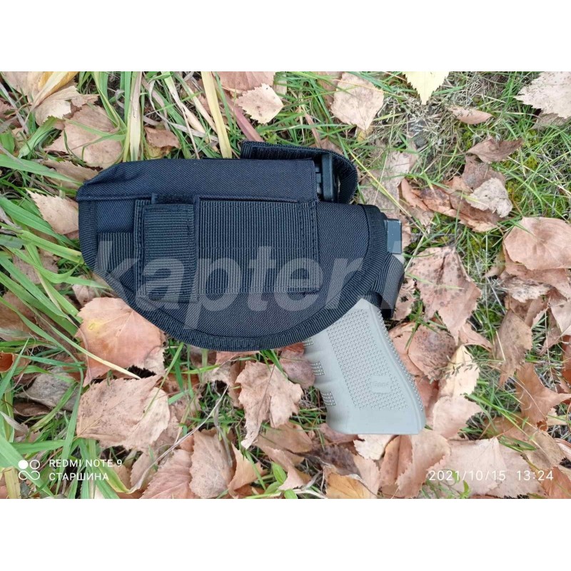 Кобура оснащена подсумками для магазинов, надежным замком-фастекс, обеспечивает быстрый доступ к оружию и его надежное хранение. Подходит как для праворуких, так и для леворуких стрелков.