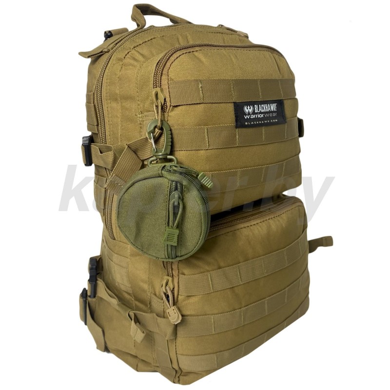 Подсумок состоит из двух вместительных отделений на молнии. Оснащен стропами MOLLE, прочным карабином, застежкой. Легко крепится к тактическому рюкзаку, разгрузочному ремню, жилету и другому снаряжению.