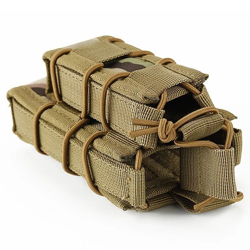 Универсальный подсумок для магазинов огнестрельного оружия различных типов. Благодаря эластичным креплениям по всему подсумку, его можно настроить под максимальное удобство для использования оператором.