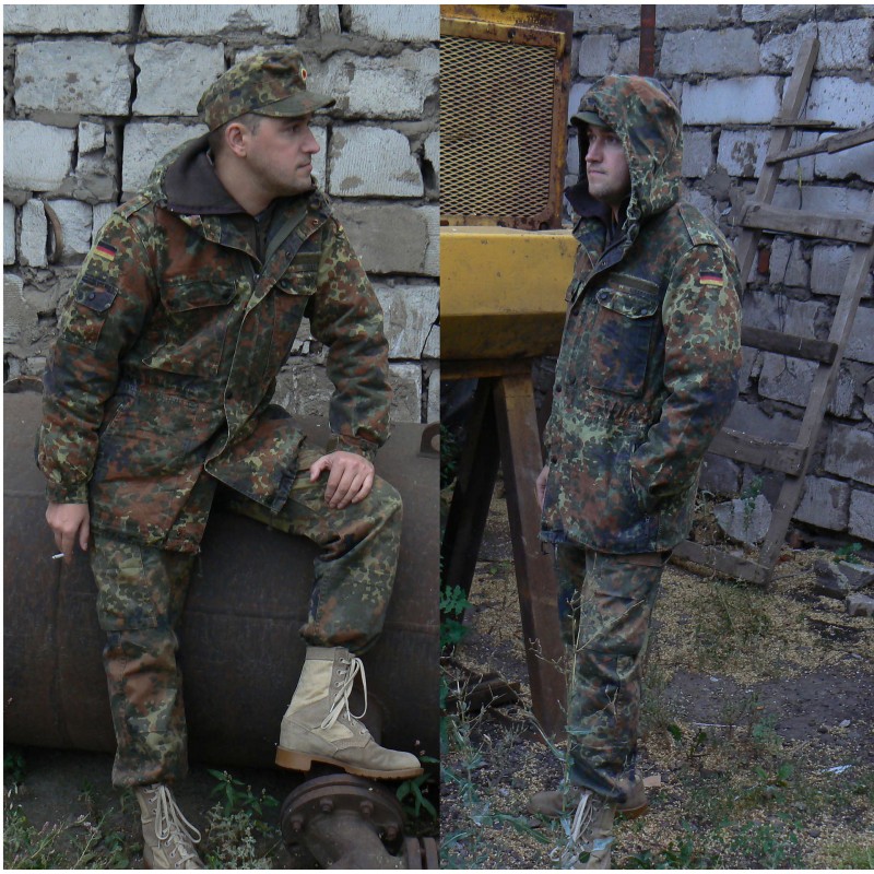 Покрой и пошив - традиционны для армии Германии: не сковывают движений, экологичны (65% хлопка и полиэстер), оснащены удобными карманами и пуговицами для подтяжек. Более легкая ткань.