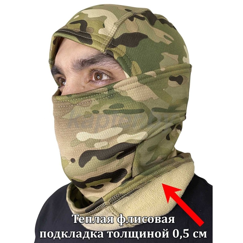 Тёплая балаклава утепленная флисом 0,5 см. Multicam.