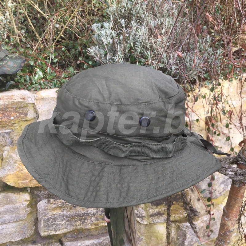 Шляпа US GI - идеальная защита головы в жаркие солнечные дни. У него широкие волнистые поля шириной около 8 см. это можно поднять с помощью ремня для подбородка.