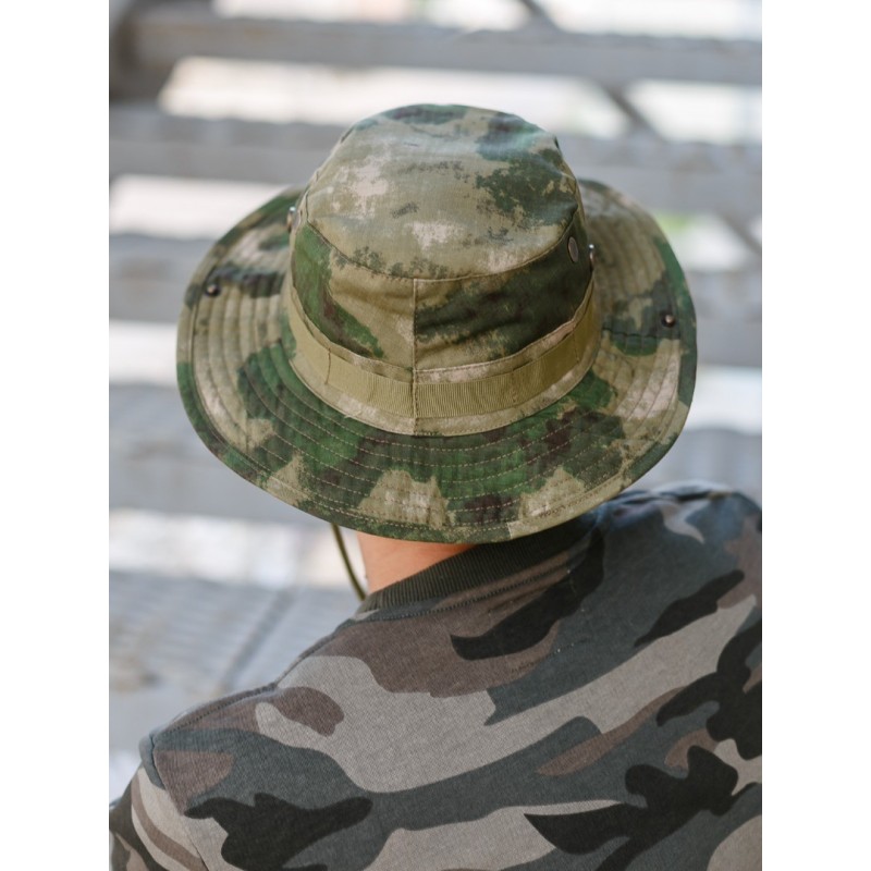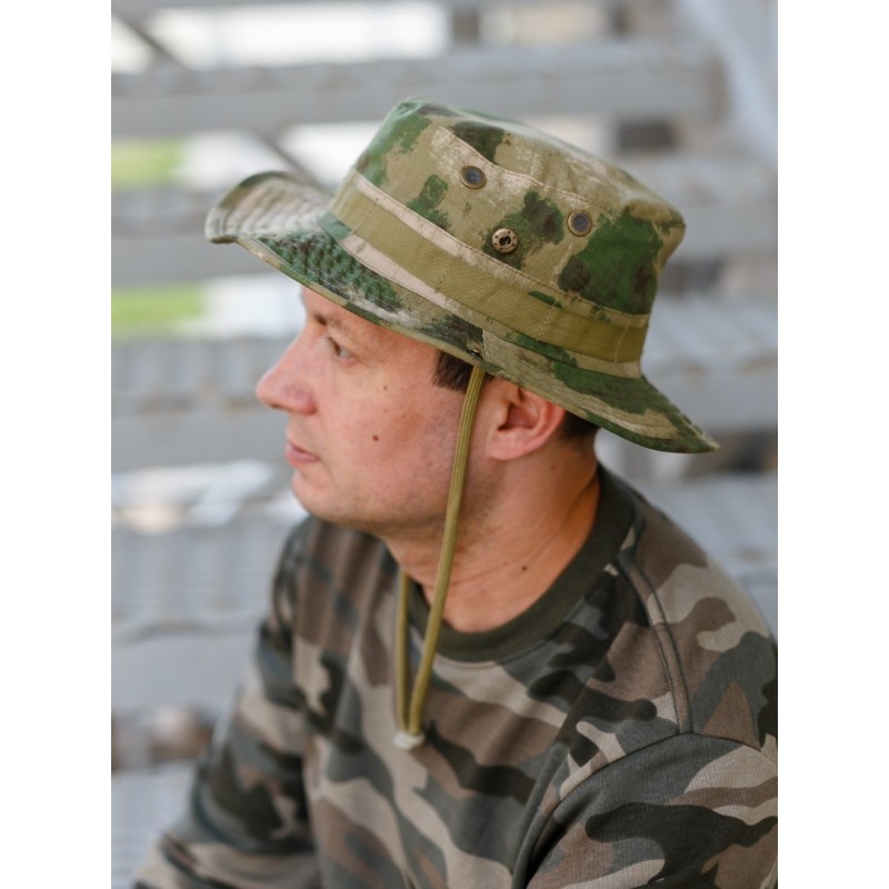 Реплика. Панама US GI - идеальная защита головы в жаркие солнечные дни. У него широкие волнистые поля шириной около 8 см. их можно поднять с помощью ремня для подбородка или кнопок на полях. Петли по периметру служат в качестве удерживающего устройства и для крепления камуфляжа или мелких предметов. Boonie также имеет решетчатые вентиляционные отверстия.