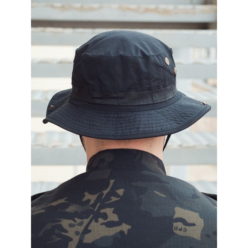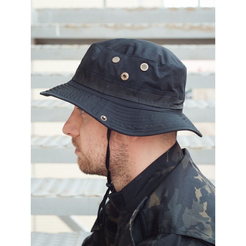 Реплика. Панама US GI - идеальная защита головы в жаркие солнечные дни. У него широкие волнистые поля шириной около 8 см. их можно поднять с помощью ремня для подбородка или кнопок на полях. Петли по периметру служат в качестве удерживающего устройства и для крепления камуфляжа или мелких предметов. Boonie также имеет решетчатые вентиляционные отверстия.