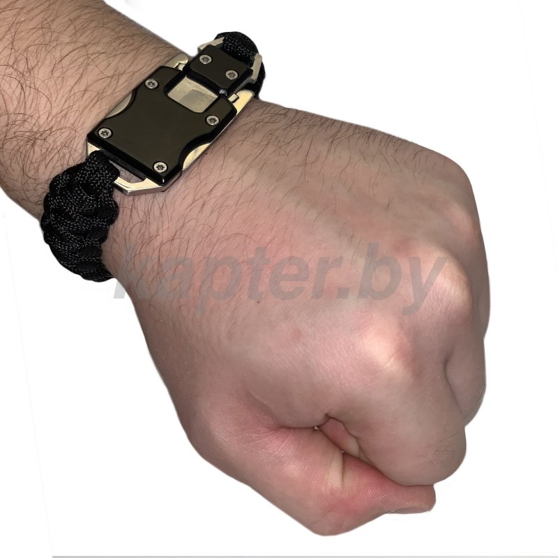 Камуфляжный тактический браслет с ножом скрытого ношения представляет собой отличный подарок для любого мужчины. Он изготовлен из высокопрочного металлического сплава и паракордового шнура. Паракорд применяется в изготовлении парашютных строп, поскольку он способен выдерживать внушительные нагрузки. Браслет можно распустить и получить в свое распоряжение 4 метра крепчайшей веревки.