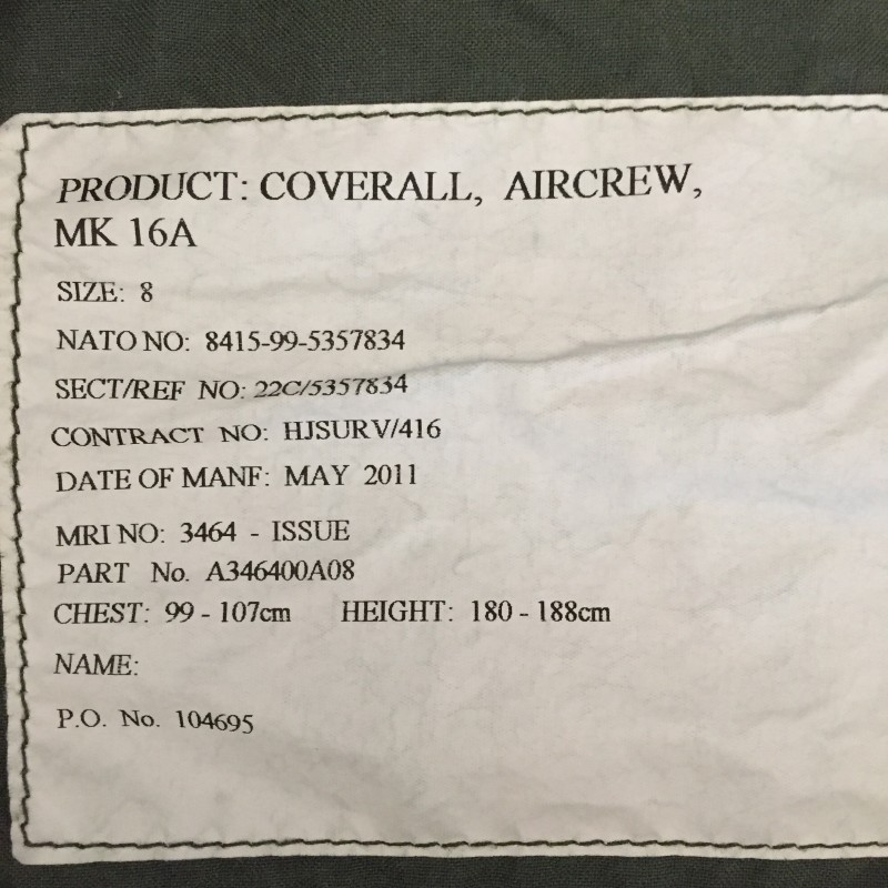Комбинезон лётный МК 16А негорючий. Англия. Олива.