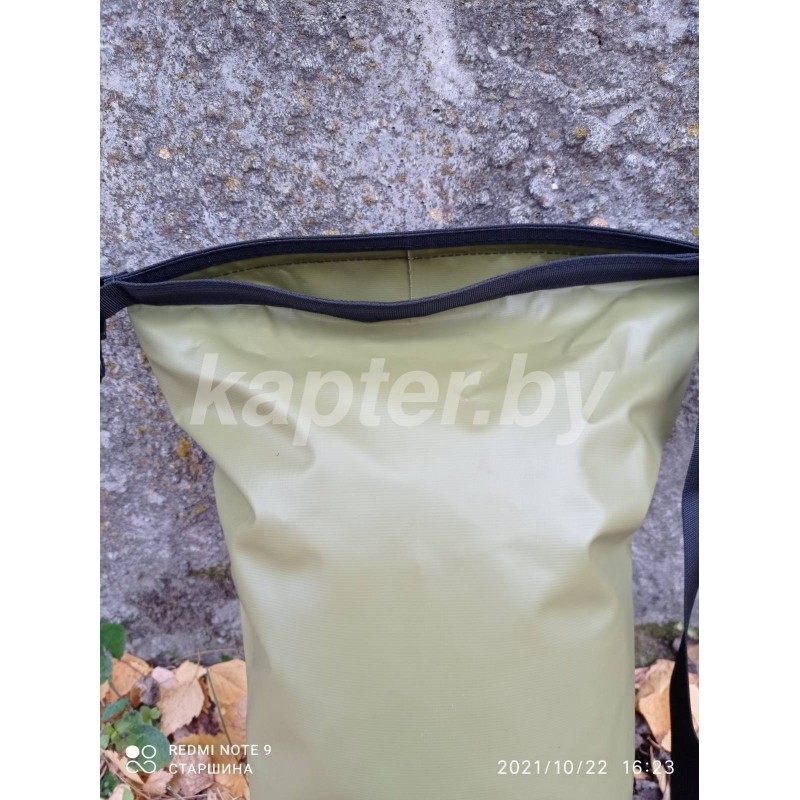 Швы проварены методом высокочастотной электросварки. Закручивается и фиксируется застежкой фастексом, образуя ручку. Незаменим в походе, на рыбалке, во время сплава на каноэ или байдарке и т.д.