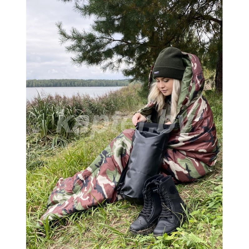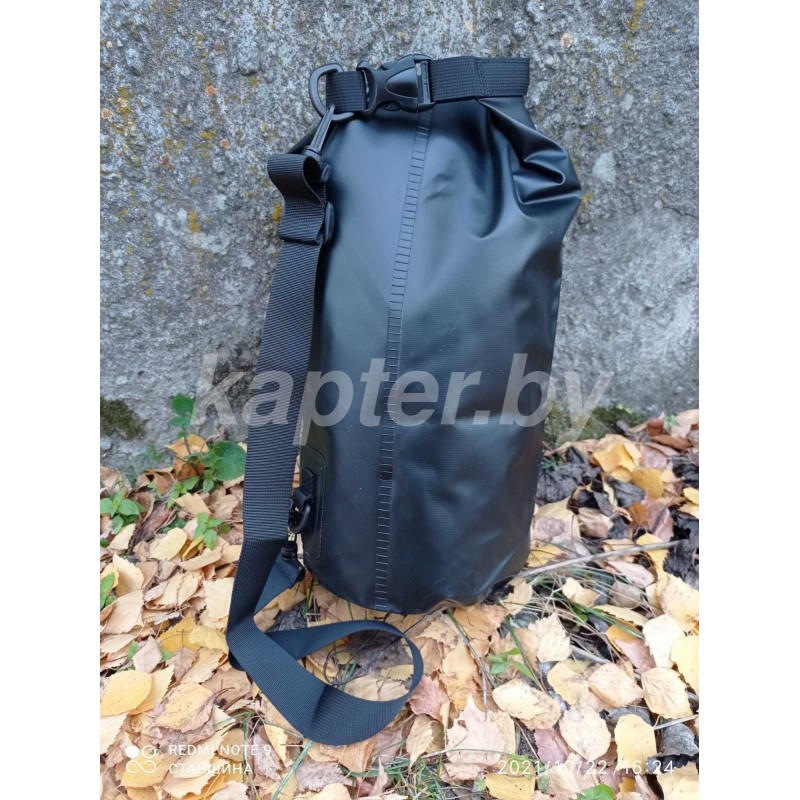 Швы проварены методом высокочастотной электросварки. Закручивается и фиксируется застежкой фастексом, образуя ручку. Незаменим в походе, на рыбалке, во время сплава на каноэ или байдарке и т.д.