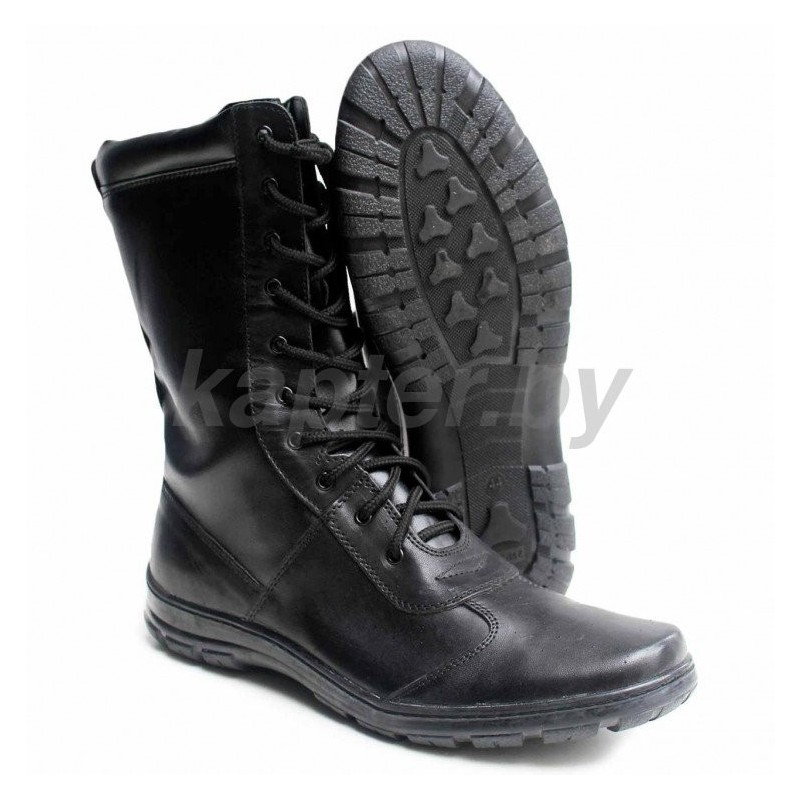 Модель изготовлена из натуральной хромовой кожи в сочетании с высококачественной подошвой с протектором для так называемого «быстрого старта». "Шнуровка + Молния"- замена быстрой шнуровки (крючки). Берец зашнуровывается по полноте ноги, далее используется молния.