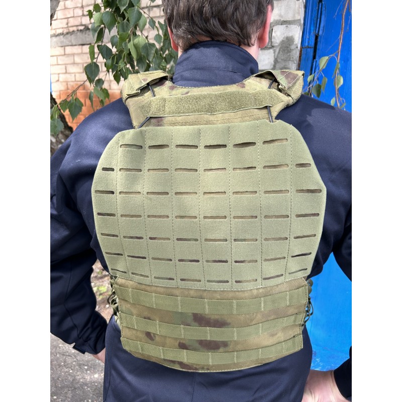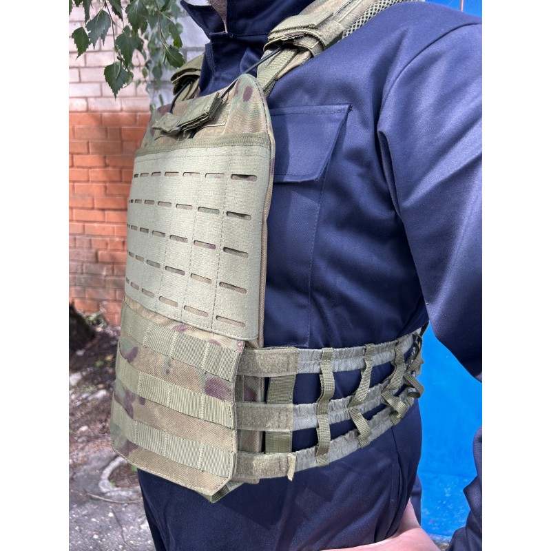 Оснащен отделениями для различных типов бронепластин с нижним клапаном на текстильных застежках. Материал - Cordura 900Den повышенной прочности, вес - всего 1.1 кг.