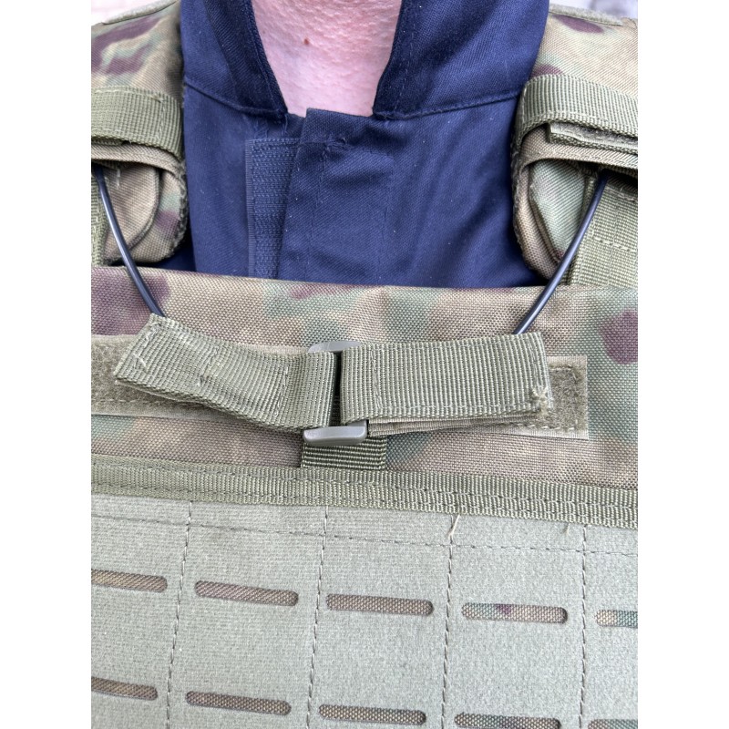 Внутри панелей плиты фиксируются утягивающими полосами на липучке. С внутренней стороны пришиты липучки для установки КАП. На внешней стороне есть стропы MOLLE на которые возможно закрепить различные подсумки, сумки гидратора, небольшие рюкзаки.