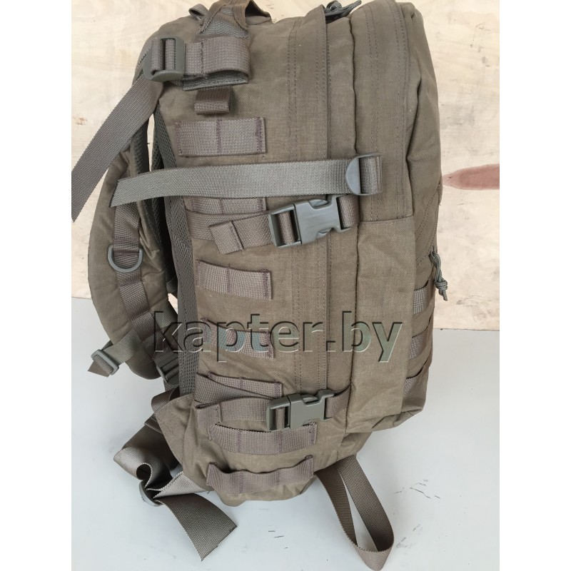Данный рюкзак рассчитан на перенос всего необходимого в рейдах продолжительностью до трех суток. Общий объем рюкзака 35 литров. Классическая для "трехдневного" рюкзака компоновка с множеством отделений, современный дизайн и система крепления дополнительных подсумков с системой MOLLE. Большое главное грузовое отделение на молнии, большой накладной карман на молнии. Регулируемые подпоролоненные плечевые ремни. Регулируемый нагрудный ремень для фиксации плечевых лямок. Регулируемый поясной ремень. Амортизационная подкладка из пенного материала по всей площади спинки рюкзака. Петли для крепления подсумков M.O.L.L.E. на фронтальной части рюкзака и по бокам. D – петли на плечевых лямках. Ручка для переноса на короткие расстояния.