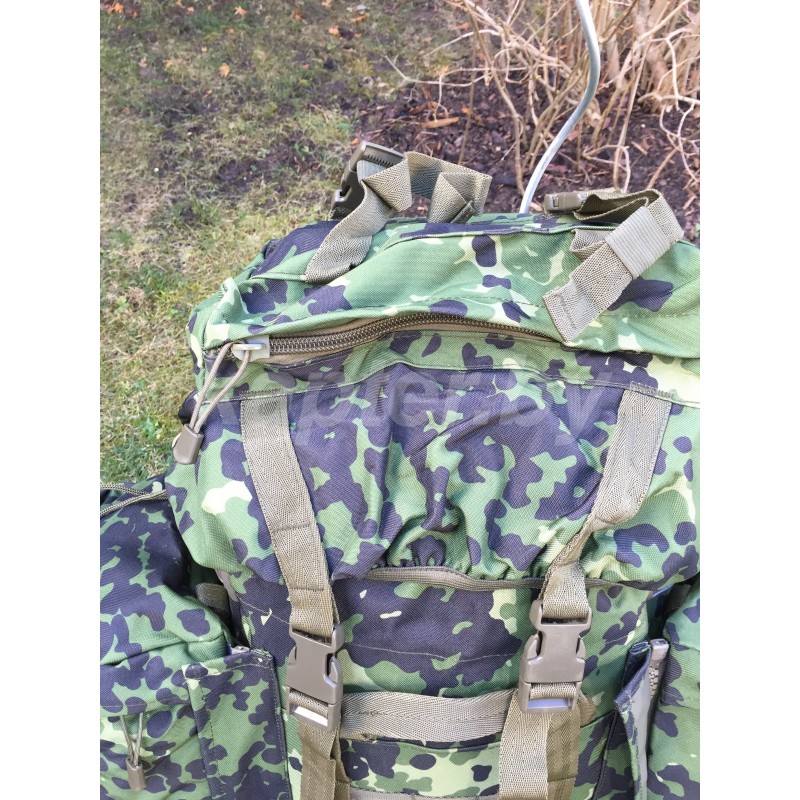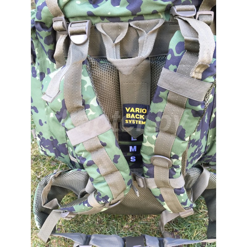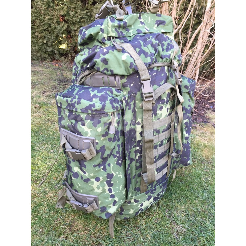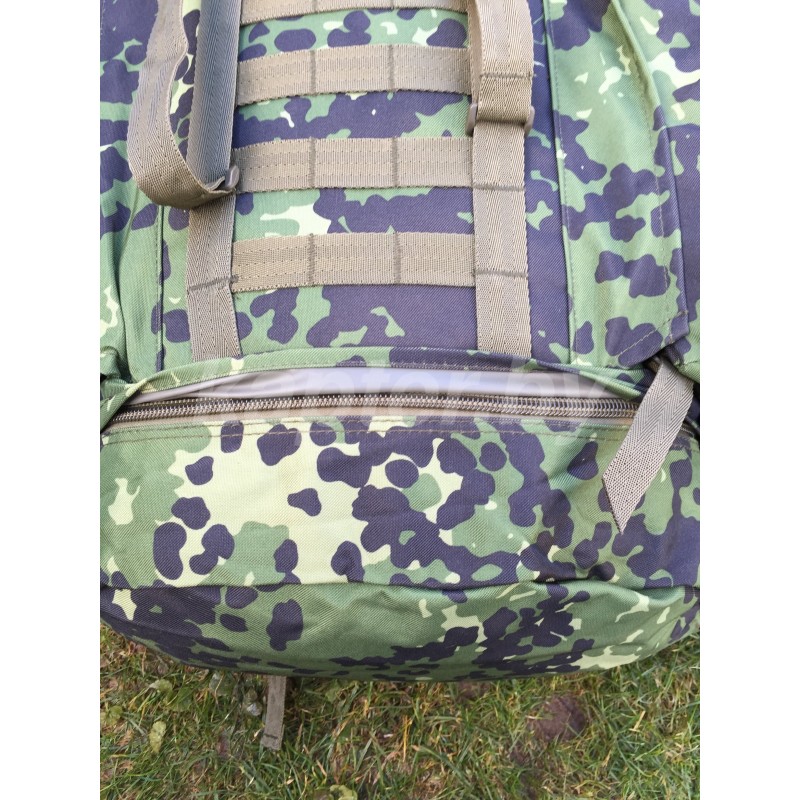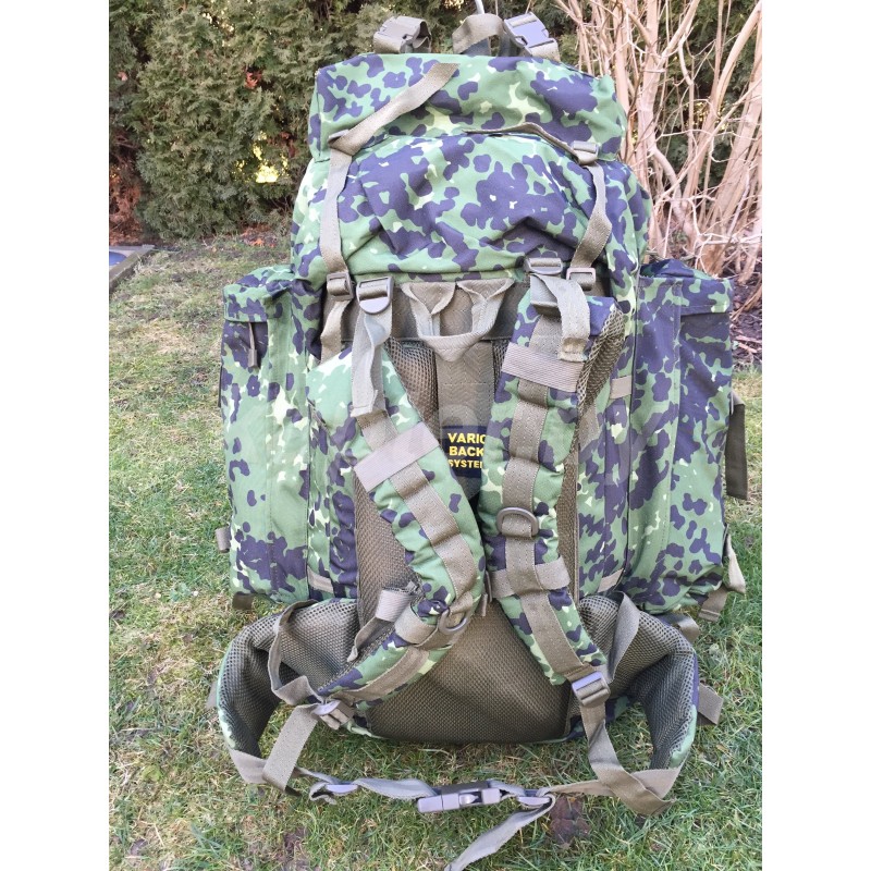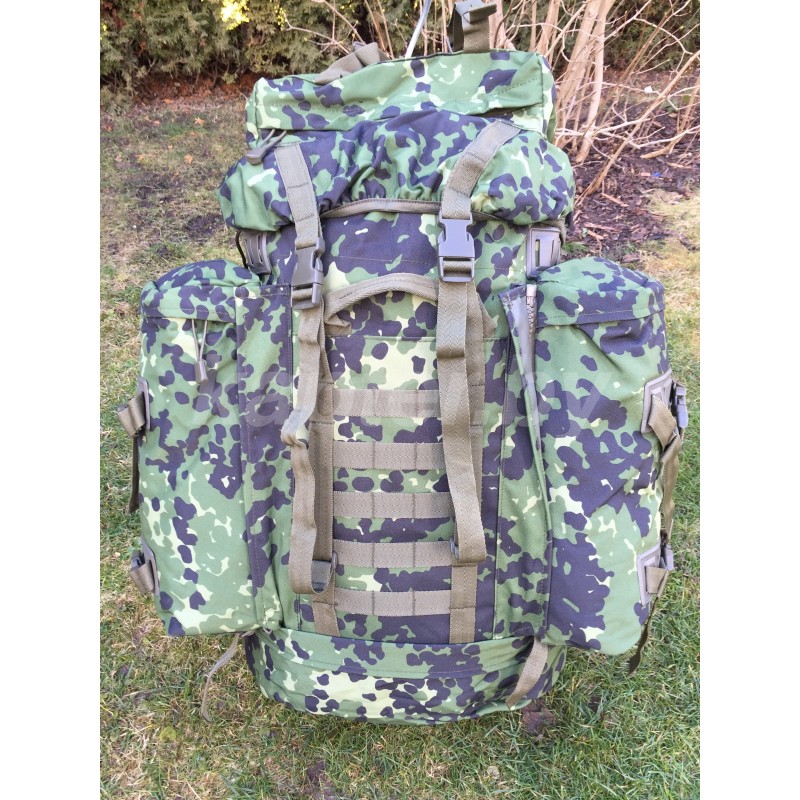 Горный рюкзак Бундесвера разработан специально для спец подразделений и является важной частью экипировки. Поэтому он имеет небольшой вес, жесткую форму, которая поддерживается алюминиевой рамой, равномерно распределяющей нагрузку по всей поверхности спины. Удобные плечевые ремни снабжены мягкими вставками. Ремень на поясе надежно фиксирует рюкзак и делает передвижение с ним еще более легким. Основной вместительный отсек фиксируется шнурком и закрывается внешней крышкой с клипсами. 2 съемных боковых кармана с застежкой-молнией имеют значительный объем, чтобы положить в них самые необходимые вещи. Прочный и водонепроницаемый материал защищает все, что находится внутри рюкзака от влаги и атмосферных осадков. Этот рюкзак идеально подойдет альпинистам, туристам, путешественникам, рыбакам, охотникам. Благодаря повышенной прочности материалов и комплектующих, из которых изготовлен рюкзак , он прослужит своему владельцу длительное время.