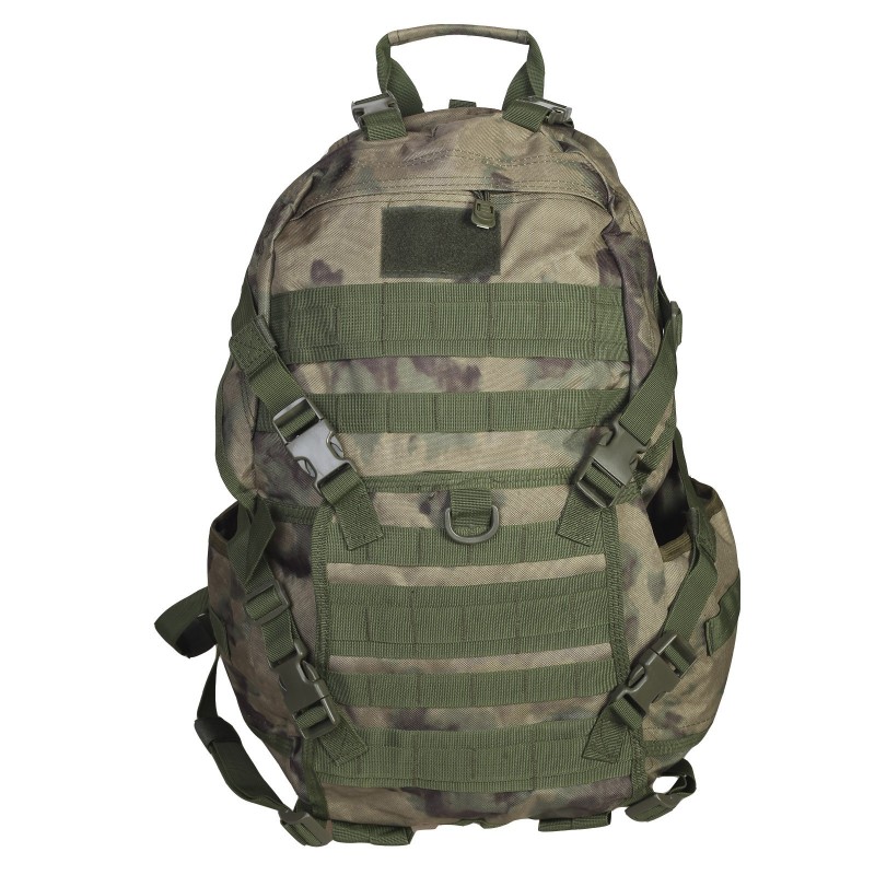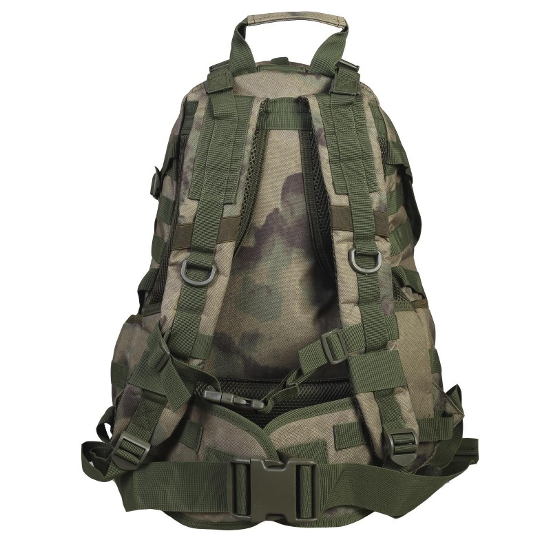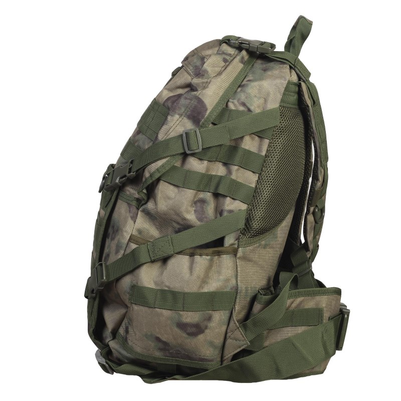 Два боковых кармана для фляг, термосов или бутылок. Удобная ручка для переноски, расположенная сверху. Множество строп для утяжки рюкзака по размеру багажа. Система крепления M.O.L.L.E. позволяет крепить на рюкзак дополнительное снаряжение: аптечки, фляги, рации, блоки дополнительного питания, подсумки для магазинов, и прочее.