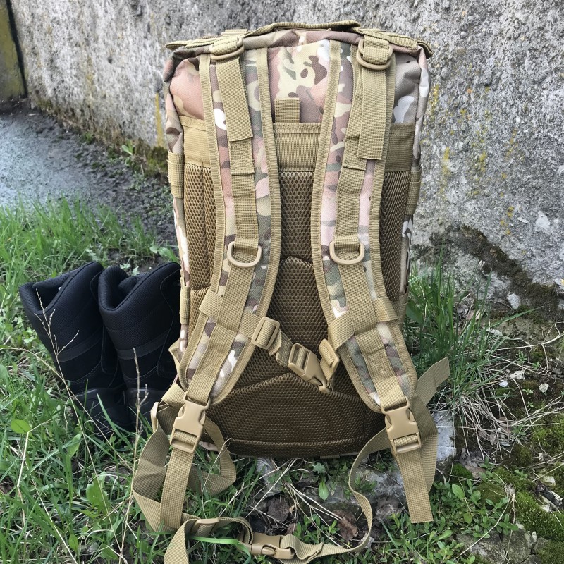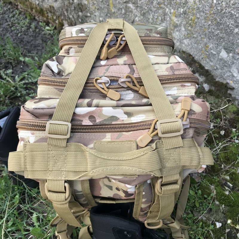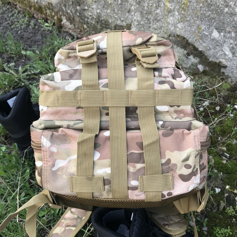 Данная модель тактического штурмового рюкзака состоит из двух больших отделений с застежками-молниями с различными сетчатыми внутренними карманами, двух маленьких передних карманов, а также встроенного кармана на липучке для гидросистемы.