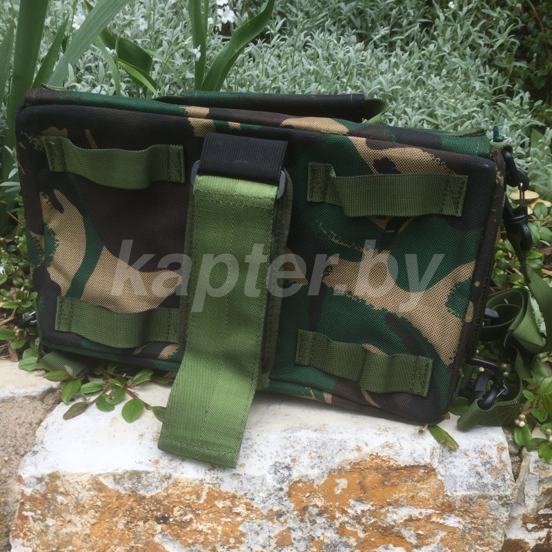 он сделан из нейлона Cordua с камуфляжным покрытием DPM и снабжен большой петлей для ремня сзади, чтобы его можно было прикрепить к комплекту лямок:
