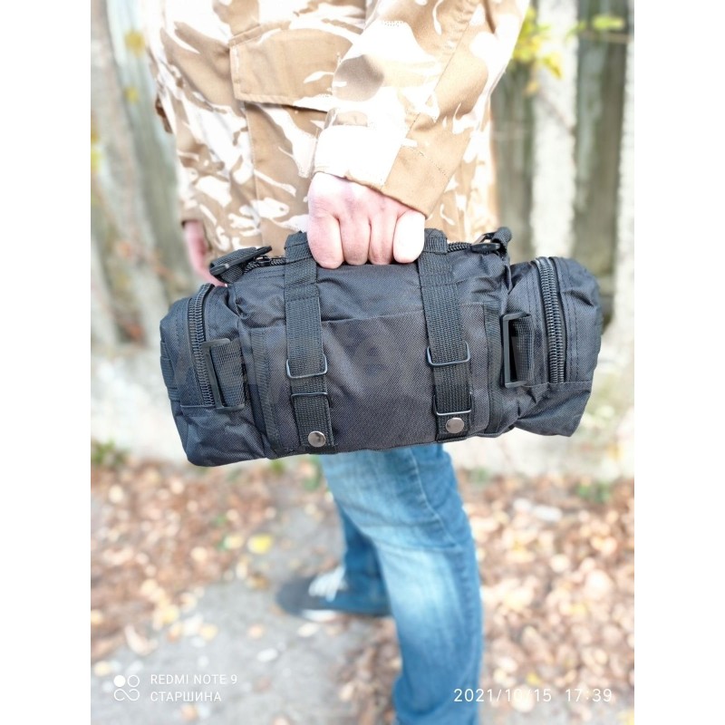 Тактическая поясная сумка с плечевым ремнём. Чёрная.